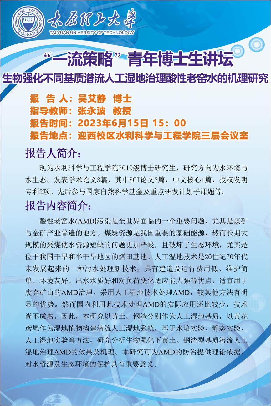 kaiyun开云官方网站“一流策略”青年博士讲坛通知--吴艾静 博士