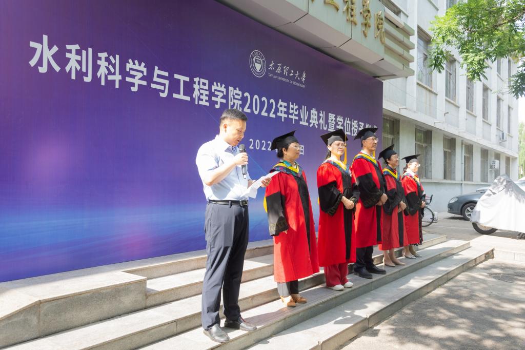 依依惜别母校,深深师院情长留心间。6月4日上午,在水利学院一楼大厅举行了kaiyun开云官方网站2022年毕业典礼暨学位授予仪式。院党委副书记王飞,副院长肖娟,副院长赵雪花,教师代表与学院200余名毕业生共同参加了本次仪式。仪式由院党委副书记王飞主持。