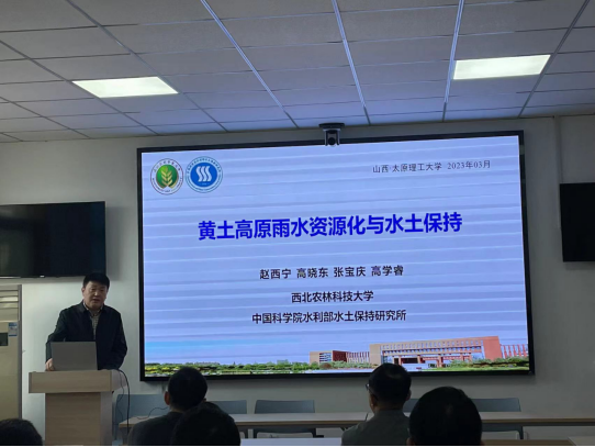 3月29日上午,西北农林科技大学赵西宁研究员、张风宝研究员和刘刚研究员应邀在我院三楼会议室进行了学术交流,并分别为广大师生作了题为《黄土高原雨水资源化与水土保持》、《退耕坡面土壤侵蚀与生态水文效应权衡研究》以及《雨滴打击对坡面薄层流阻力特性的影响》的学术报告。本场报告由学院副院长赵雪花主持,学院部分教师、研究生参加讲座。