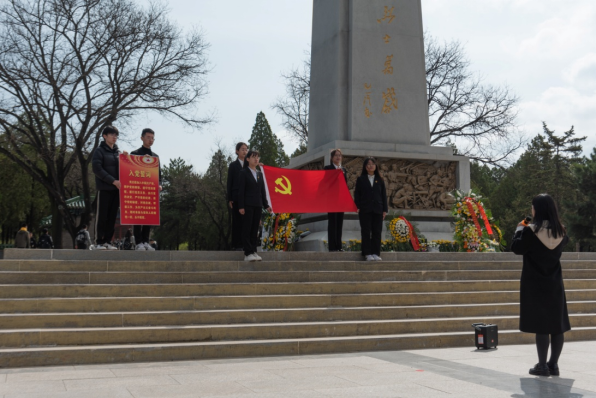 朝日初升,在革命烈士纪念碑前,全体人员在烈士纪念碑前整齐列队,奏唱中华人民共和国国歌。奏唱结束后,全体人员低首肃立,向为中国人民解放事业和共和国建设事业英勇献身的烈士默哀,表达对先烈的深切哀悼和崇敬之情。之后,伴随着悲壮的乐曲,学生代表手抬花篮,迈着沉重的步伐,向烈士纪念碑敬献花篮,整个过程庄严肃穆,井然有序。随后,辅导员王铭聪带领大家重温入党誓词,庄严的誓词铿锵有力、字字入心,以铮铮誓言表达向革命先烈学习的决心、坚守忠诚于党的初心和为党的事业奋斗终身的恒心。之后,学生代表赵子赫向烈士献词,表达了对革命烈士们的沉痛追思与哀悼,并号召同学们继承先辈遗志,发扬优良传统,为中华民族伟大复兴而不懈奋斗!最后,全体师生列队,依次为革命烈士献花并致以崇高的敬意。