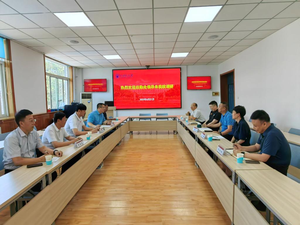 6月21日上午,后勤保障处处长师红军、副处长宋晓峰、动力中心主任曾尚勇等一行到我院调研。党委书记闫怡红、副院长(主持工作)肖娟、副书记王飞、副院长郭向红、实验中心主任周义仁参加了调研。