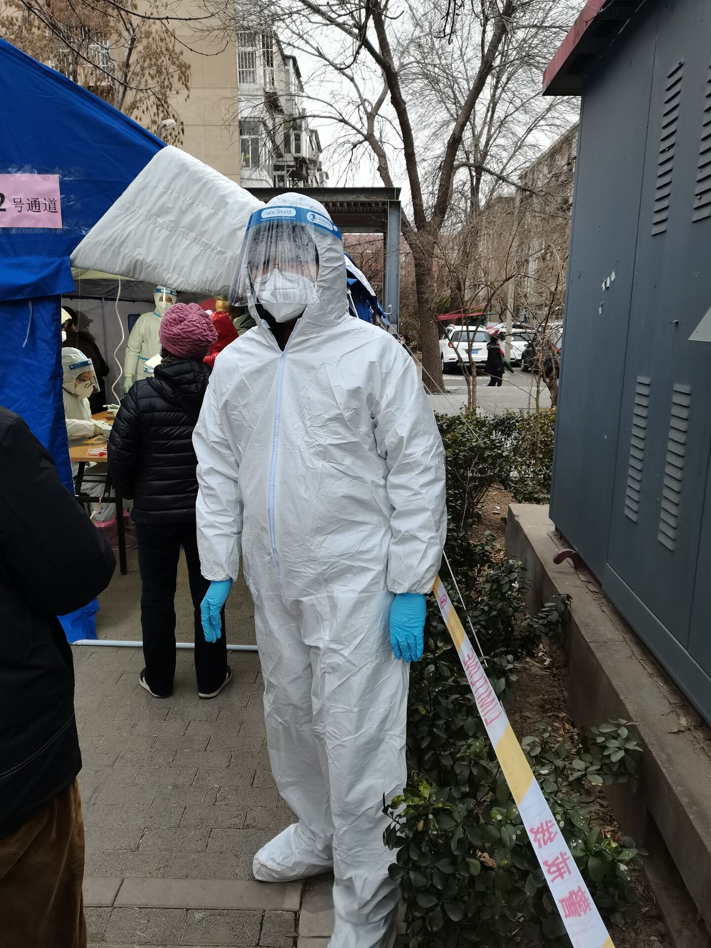 在本轮核酸筛查中,他主要负责居民的引导工作,帮助市民有序完成核酸检测。第四轮核酸检测进行的时间是二十四节气中最冷的一天——大寒。在这天,他凌晨四点多就起床洗漱,五点钟准时到社区集合更换防护衣物,六点钟核酸检测正式开始。他所居住的社区老人比较多,但是在志愿者的多方配合下,早上十点左右整个社区的核酸检测就已基本完成。