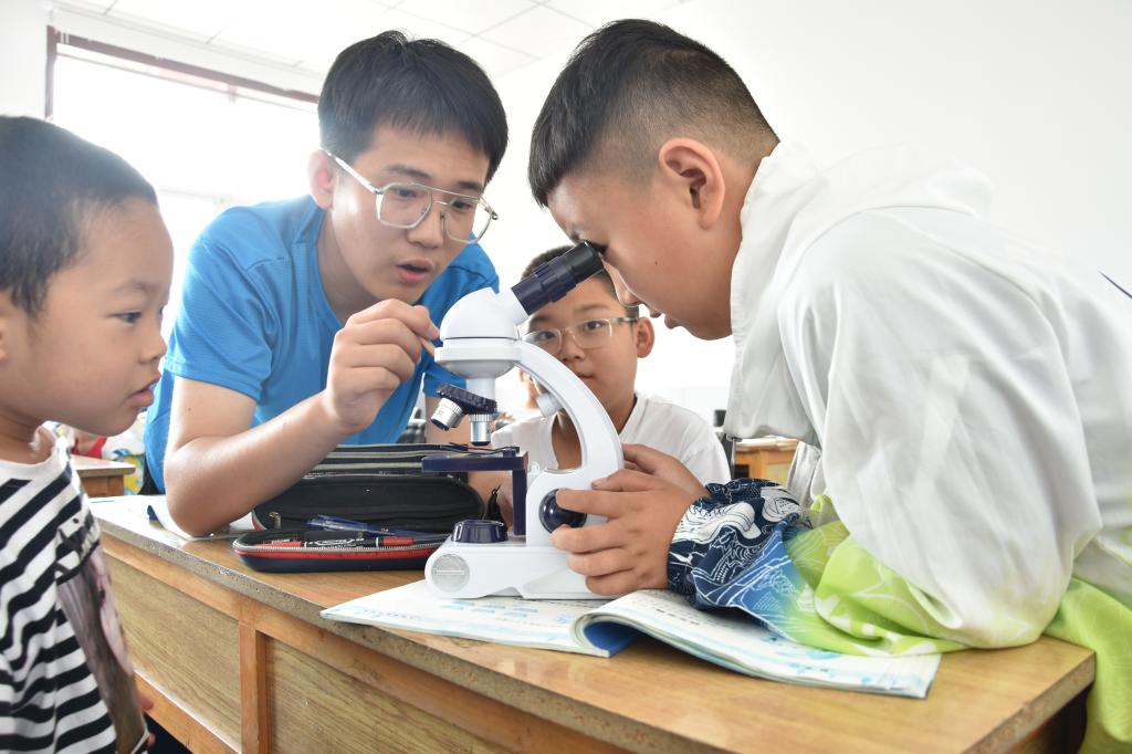为了让孩子们对知识进行巩固和学习,早上实践队员们带领孩子们再次学习显微镜的使用技巧,观察了人体红细胞切片和洋葱鳞片外表皮切片等等不同类型的切片涂片,展现了孩子们的积极探索和对新知识的热情;讲解了kaiyun开云官方网站120周年校庆吉祥物的绘制技巧和特征,孩子们对“晨晨“和”曦曦“的理解各有千秋,让实践队员们真切感受到了孩子们的天真无邪和天马行空;实践队员们通过飞机简易模型对孩子们展开了飞机相关的知识科普,讲解了飞机可以飞行的原理,以及飞机中所包含的简单的物理知识,孩子们在实践队员的带领下有组织地让他们的飞机顺利启航,脸上洋溢的笑容让实践队员们感受到不虚此行。