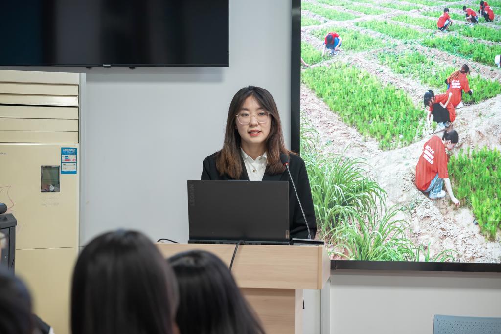 首先由实践队员代表梁尧琦、郭星妤两位同学分别代表“百廿太理牵手美丽五寨”社会实践队、“百廿太理牵手生态右玉”社会实践队进行总结汇报,她们用ppt和视频等展示方式,为大家分享各队伍社会实践期间的丰富经历与收获。