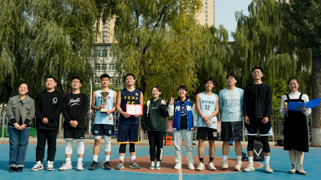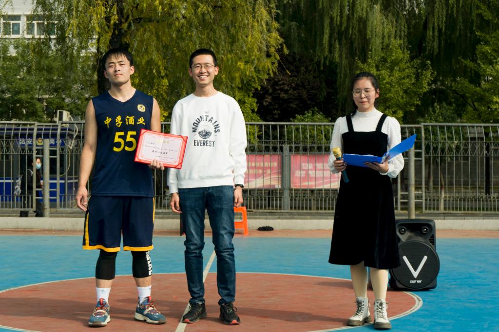 本次篮球赛共有八支队伍、100余名同学报名参加,经过多天激烈角逐,十几场比赛的你争我夺,最终2019级本科生篮球队摘得桂冠,2020级研究生队和2020级本科生一队分别获得亚军和季军,水文1902班成新宇同学获得本次比赛最有价值球员奖。校团委书记闫新、院党委副书记王飞、院团委书记兼学工办主任田韶华分别为获得冠军、亚军、季军的队伍颁奖。