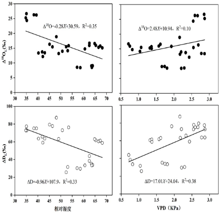 图2 叶片水稳定同位素与气象因子的相互关系
